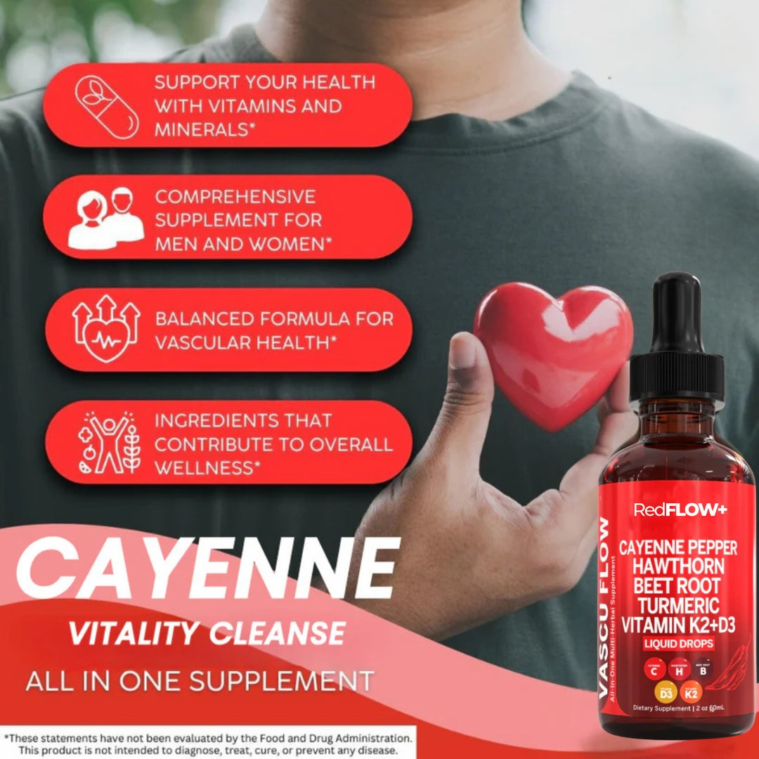 When your blood flows freely, your entire body feels it—more oxygen, more energy, more balance. Cayenne+ helps relax blood vessels and support smoother circulation, so your heart works less and you feel clearer, stronger, and more alive.