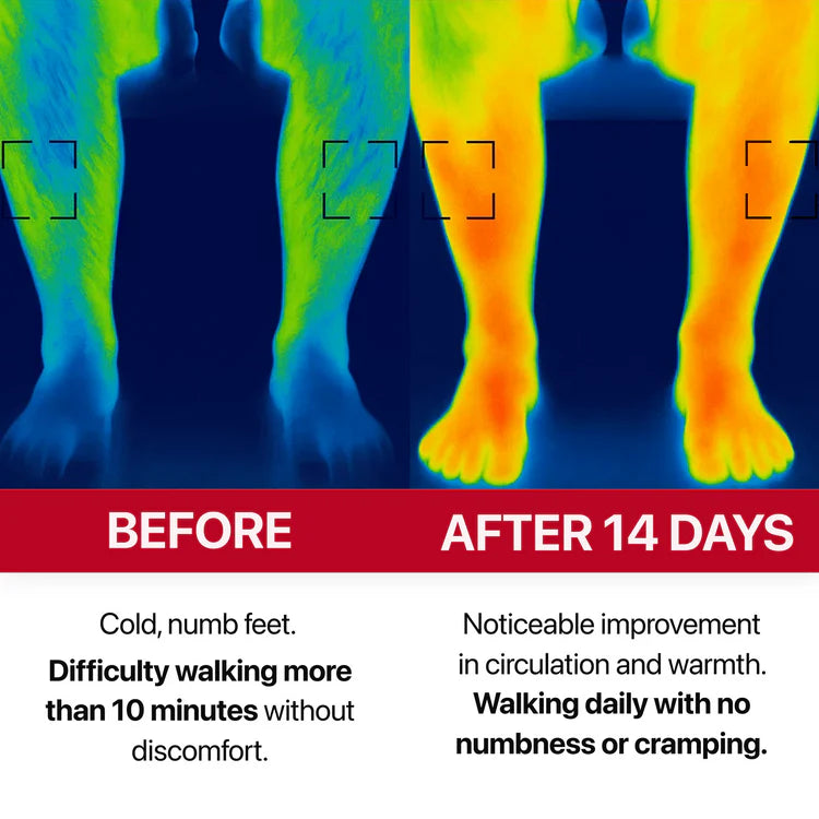 Cold, numb feet after walking? RedFLOW+ boosts circulation, restores warmth, and eases discomfort in just 14 days—ideal for poor circulation, sedentary lifestyles, or age-related issues.