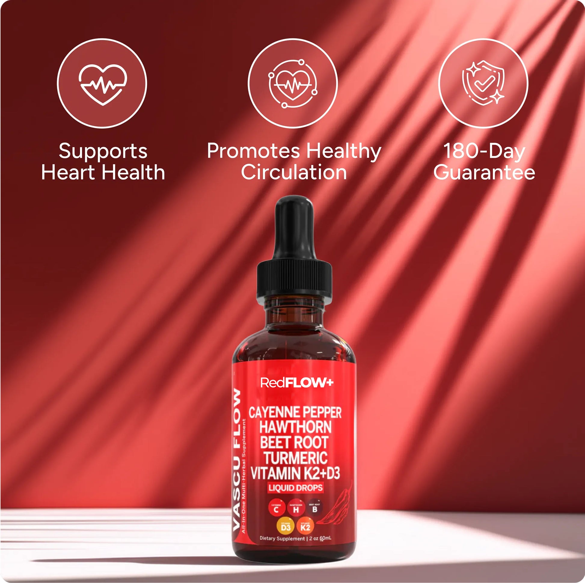 RedFlow+ is a liquid circulation support supplement designed to promote healthy blood flow, heart function, and vascular health using a blend of natural, science-backed ingredients.